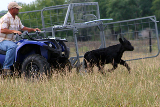 The cage safely guards the cattlemen against the often protective mother cow when handling the calf. The cow can smell and see the calf through the cage, and the cowman remains safe at all times. The calf catcher is made of very high quality, all welded construction. It has been tested and proven over multiple terrains and weather-related challenges such as hills, rocks, holes, mud, and snow. |
